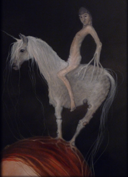 - distanziert verharrend auf des Einhorns Unschuldsweiß,